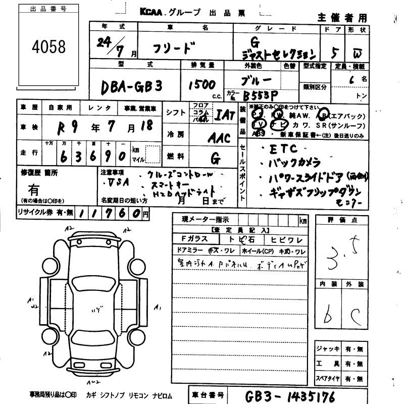 Лот 4058: HONDA FREED