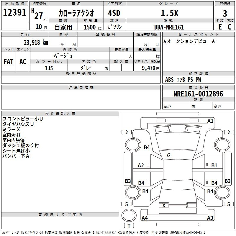 Лот 12391: TOYOTA COROLLA AXIO